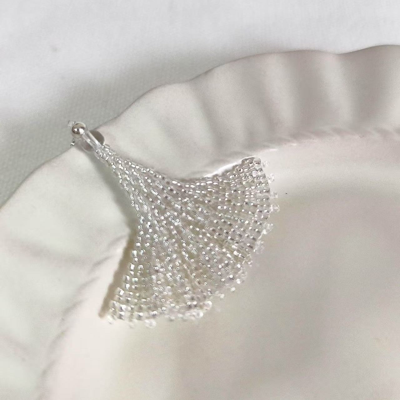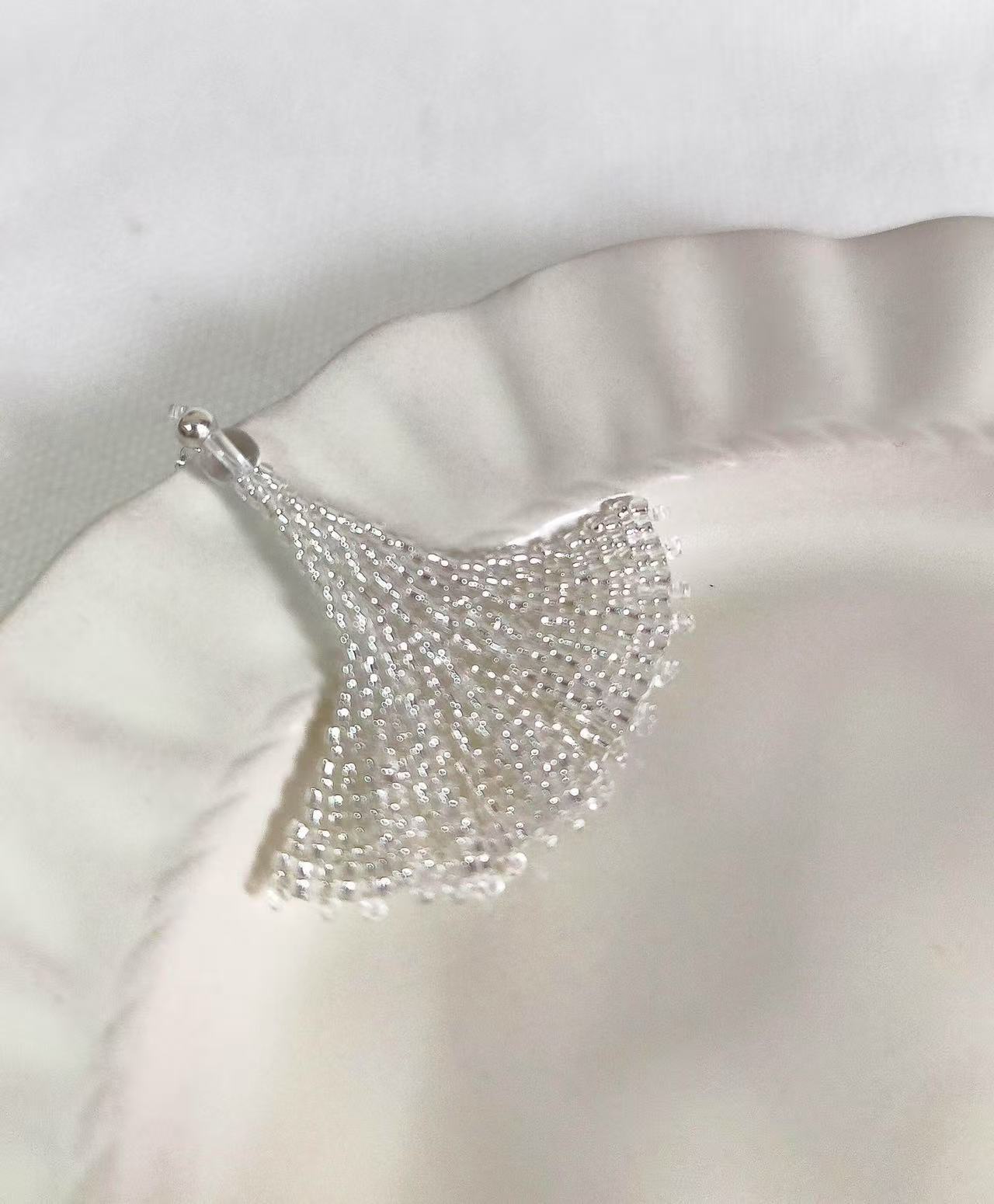 Clear Bead Woven Girl's Skirt Beaded Earrings